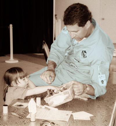 One of the perks of the job (besides the cool blue astronaut jump suit) was the occasional opportunity to help out NASA educator Brian Hawkins with his teacher workshops during his visits to the museum. Another unique aspect of working and volunteering at the museum was the chance to rub shoulders with astronauts from Mercury, Gemini, Apollo, and Shuttle programs.